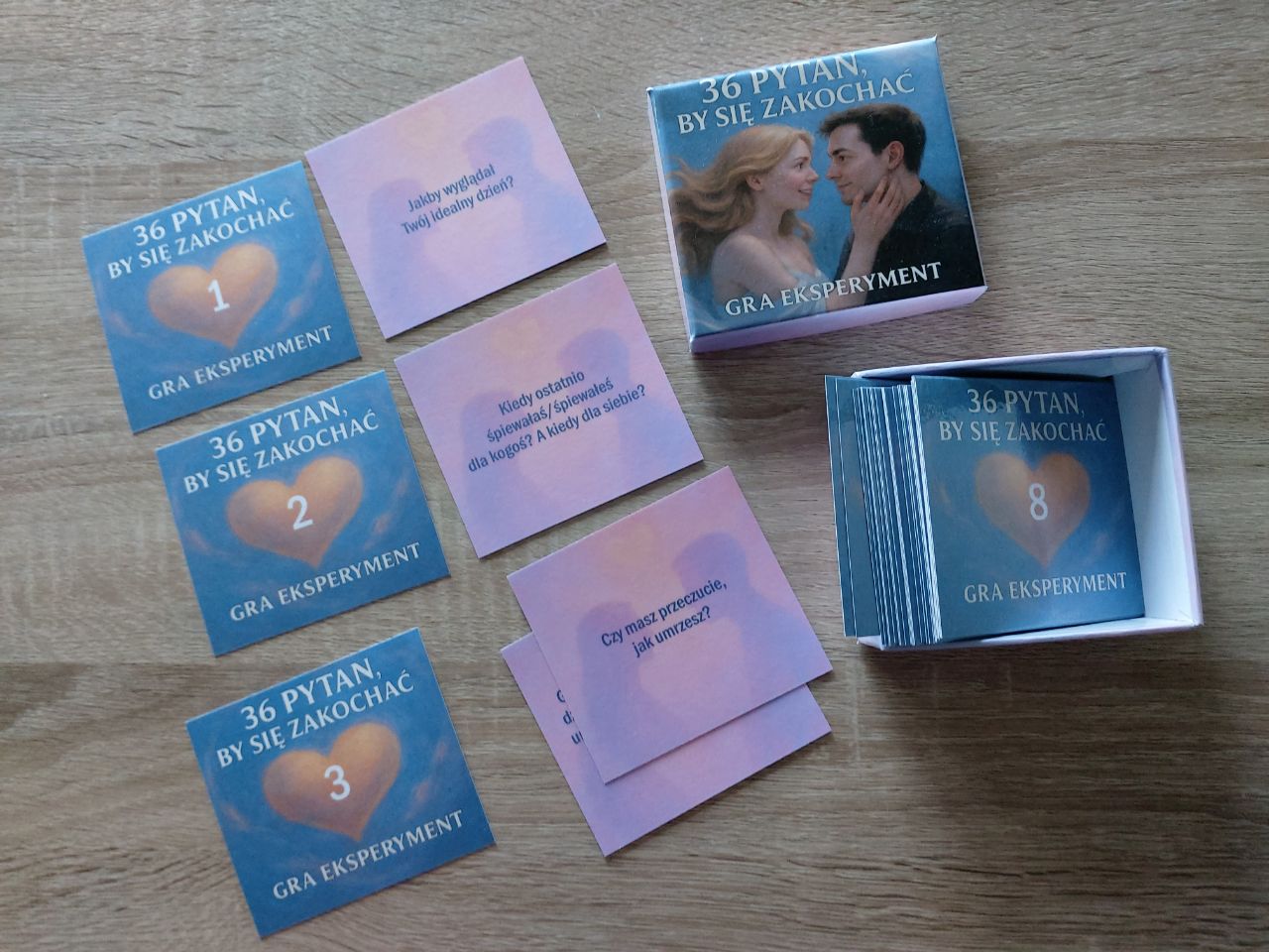 Odkryj magię pytań, które od 25 lat zbliżają ludzi na całym świecie! Gra stworzona przez psychologa Anastasię Kolend-Smirnovą na bazie badań Arthura Arona to wyjątkowy sposób, by: zakochać się na nowo, odświeżyć uczucia w związku, zbliżyć się emocjonalnie do znajomych i przyjaciół. Wystarczy szczerość, otwartość i 36 pytań, aby przeżyć rozmowę, która zostaje w pamięci na długo. To nie zwykła gra – to eksperyment, który może zmienić Waszą relację.